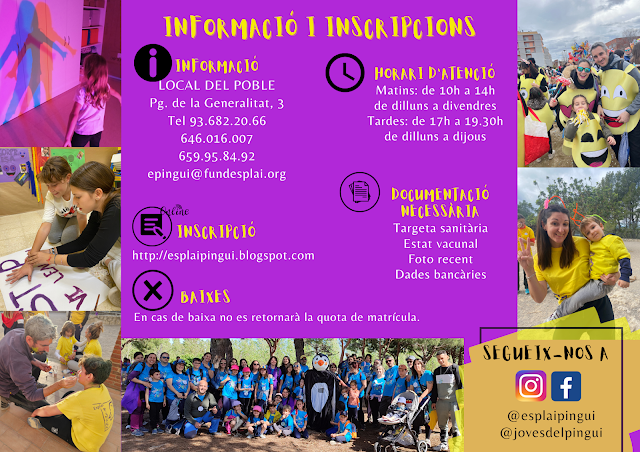 Si voleu més informació o teniu algun dubte podeu posar-vos en contacte amb nosaltres 93.682.20.66 o via mail epingui@fundesplai.org